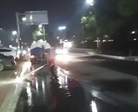 区环卫所加班加点进行洗城行动。